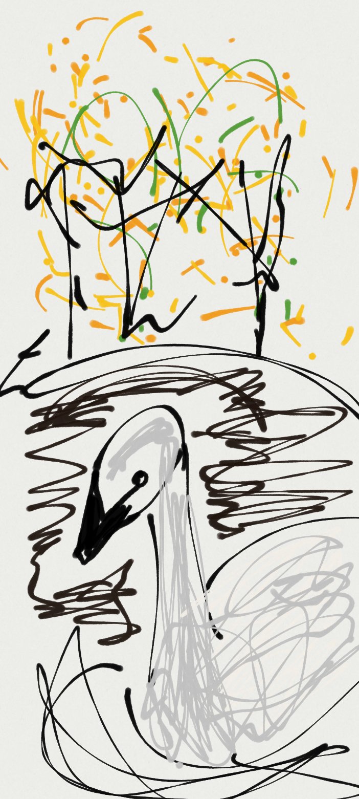 We walked by the lake at st Ives this lunchtime and we saw young swans. And they were really beautiful. So I did a sketch on my phone. That's all I have today.